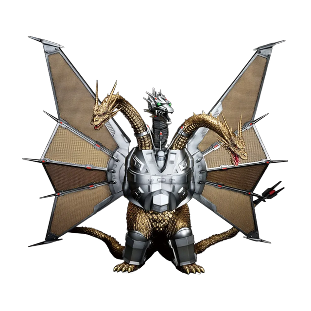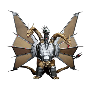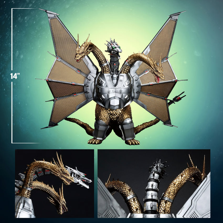 Standing at approximately 14” tall, Mecha-King Ghidorah is seen in their popular pose.